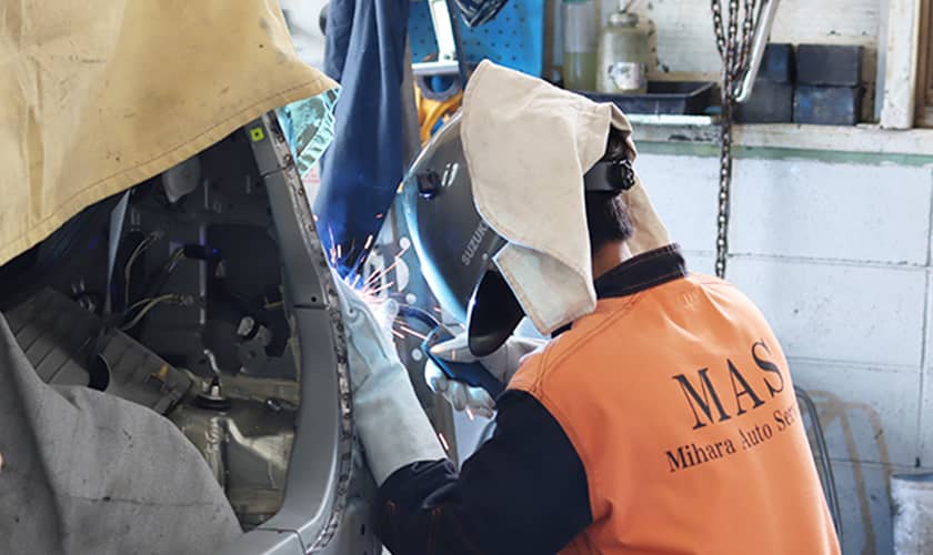 キズやヘコミを直す鈑金や、お好みのカラーリングを施す塗装などのサービスも提供。エコに配慮し、リサイクル部品の提案にも力を入れています。